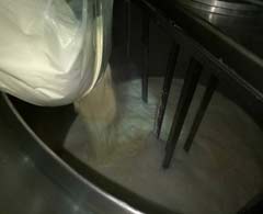 - Paste preparation: we can prepare the pastes many days in advance, one for each flavor, and preserve in well closed containers. The gelato paste is a sort of jam or marmalade with sugar, glucose, concentrated and blended fresh fruit that will give to the ice cream the typical smooth feeling to the ice cream. It obtains by properly blending, boiling and mixing the ingredients. We avoid to use chemicals additives. The few "ready for use" paste that we use are from Italy where only fresh ingredients are allowed for ice cream preparations.